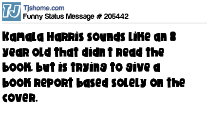X says Kamala Harris sounds like an 8 year old that didn’t read the book, but is trying to give a book report based solely on the cover.