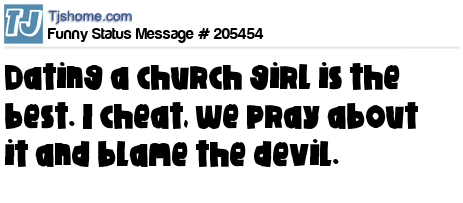 X says Dating a church girl is the best. I cheat, we pray about it and blame the devil.