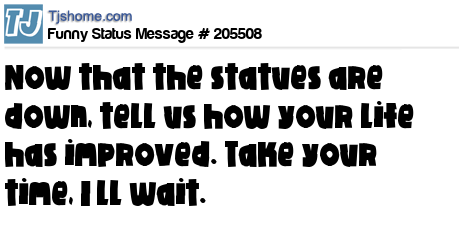 X says Now that the statues are down, tell us how your life has improved. Take your time, I’ll wait.
