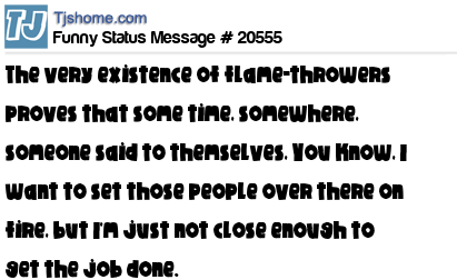 - # 100908 The very existence of flamethrowers proves that sometime, somewhere, someone said to themselves,"You know, I want to set those people over there on fire, but I'm just not close enough to get the job done."