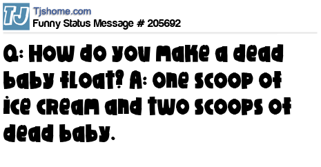 X says Q: How do you make a dead baby float? A: One scoop of ice cream and two scoops of dead baby.