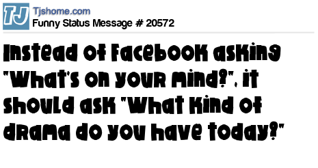 X Instead of Facebook asking "What's on your mind?", it should ask "What kind of drama do you have today?"