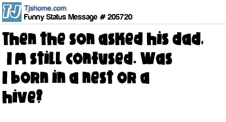 X says Then the son asked his dad, “I’m still confused. Was I born in a nest or a hive?”