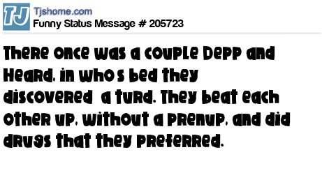 X says There once was a couple Depp and Heard, in who’s bed they discovered a turd. They beat each other up, without a prenup, and did drugs that they preferred.