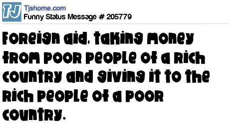 X says Foreign aid, taking money from poor people of a rich country and giving it to the rich people of a poor country.
