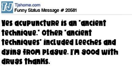 X Yes acupuncture is an "ancient technique." Other "ancient techniques" included leeches and dying from plague. I'm good with drugs thanks.