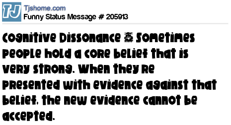 X says Cognitive Dissonance ~ Sometimes people hold a core belief that is very strong. When they’re presented with evidence against that belief, the new evidence cannot be accepted.