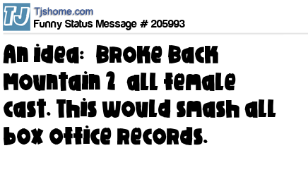 X says An idea: “Broke Back Mountain 2” all female cast. This would smash all box office records.