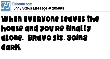 X says When everyone leaves the house and you’re finally alone. “Bravo six, going dark.”