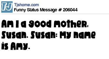 X says Am I a good mother, Susan. Susan: My name is Amy.