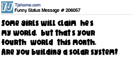 - # 183250 Some girls be claiming "hes my world" but this is your fourth "world" in 2 months. My sister, are you building a solar system??