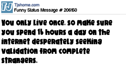 - # 164112 You Only Live Once: So make sure you spend 15 hours on the internet everyday, desperately seeking validation from strangers. After all it's 2016!!!