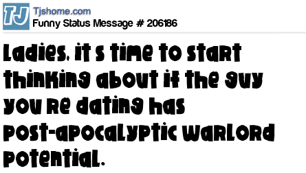 X says Ladies, it’s time to start thinking about if the guy you’re dating has post-apocalyptic warlord potential.