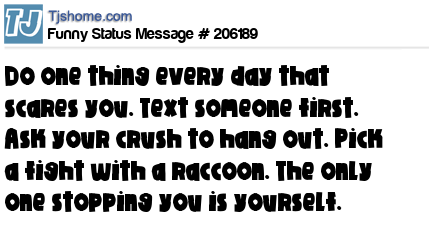 X says Do one thing every day that scares you. Text someone first. Ask your crush to hang out. Pick a fight with a raccoon. The only one stopping you is yourself.