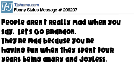 X says People aren’t really mad when you say, “Let’s Go Brandon.” They’re mad because you’re having fun when they spent four years being angry and joyless.