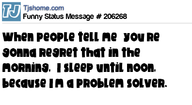 - # 135860 When people tell me "You're gonna regret that in the morning" I sleep in til noon, because I'm a problem Solver