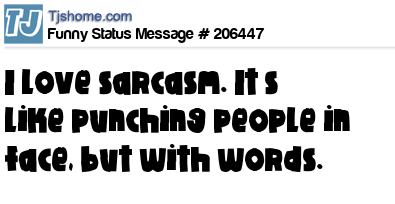 X says I love sarcasm. It’s like punching people in face, but with words.
