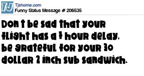 X says Don’t be sad that your flight has a 7 hour delay, be grateful for your 30 dollar 2 inch sub sandwich.