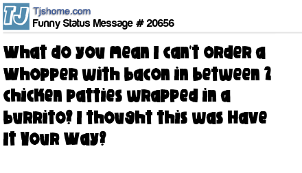X What do you mean I can't order a Whopper with bacon in between 2 chicken patties wrapped in a burrito? I thought this was Have It Your Way?