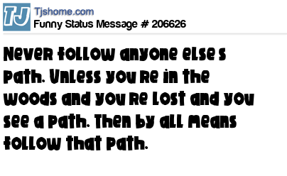 X says Never follow anyone else’s path. Unless you’re in the woods and you’re lost and you see a path. Then by all means follow that path.