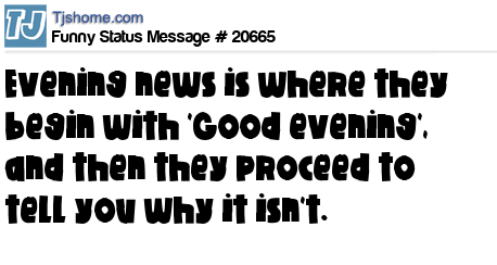 - # 73857 Evening news is where they begin with ‘Good evening', and then proceed to tell you why it isn't.