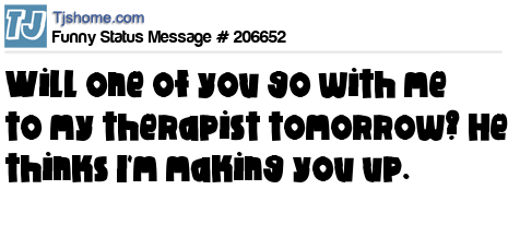 - # 187731 Will you go with me to my therapist tomorrow? He thinks I'm making you up.