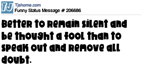 - # 42556 Better to remain silent and be thought a fool, than to speak and remove all doubt.