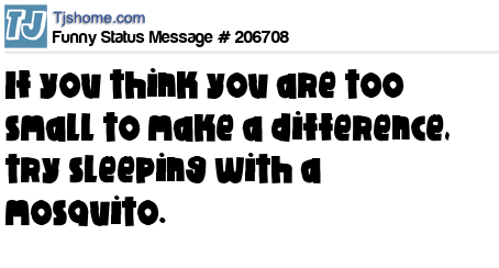 X says If you think you are too small to make a difference, try sleeping with a mosquito.