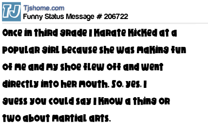 X says Once in third grade I karate kicked at a popular girl because she was making fun of me and my shoe flew off and went directly into her mouth. So, yes, I guess you could say I know a thing or two about martial arts.