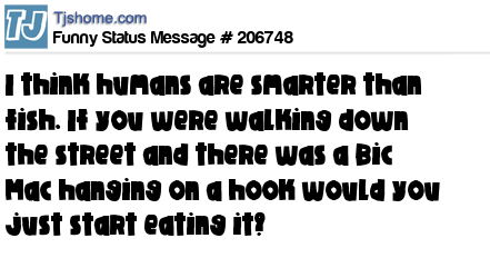 X says I think humans are smarter than fish. If you were walking down the street and there was a Bic Mac hanging on a hook would you just start eating it?