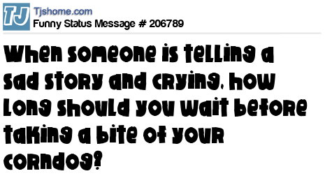X says When someone is telling a sad story and crying, how long should you wait before taking a bite of your corndog?