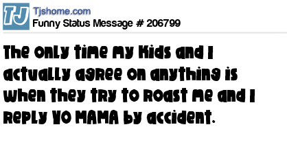 X says The only time my kids and I actually agree on anything is when they try to roast me and I reply YO MAMA by accident.
