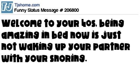 X says Welcome to your 40s, being amazing in bed now is just not waking up your partner with your snoring.