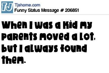 - # 8161 ...When I was a kid my parents moved a lot, but I always found them.