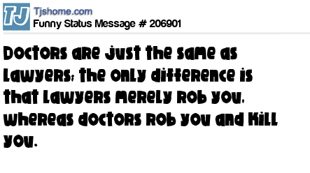 X says Doctors are just the same as lawyers; the only difference is that lawyers merely rob you, whereas doctors rob you and kill you.