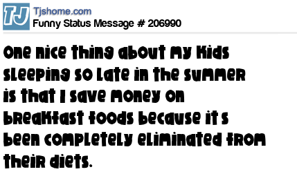 X says One nice thing about my kids sleeping so late in the summer is that I save money on breakfast foods because it’s been completely eliminated from their diets.