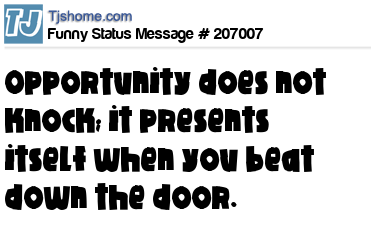 - # 13085 If there is a window of opportunity ... why the hell does it knock? Shouldn't it be a door? No wonder so many people miss opportunities. They answer the door, not the window.