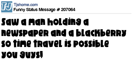 X says Saw a man holding a newspaper and a blackberry so time travel is possible you guys!
