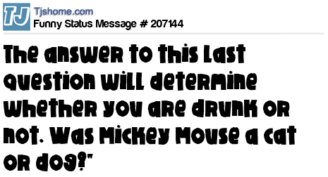 - # 17307 the answer to this last question will determine whether you are drunk or not....Was Mickey Mouse a cat or a dog?