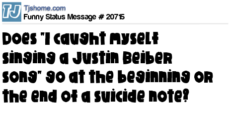 X Does "I caught myself singing a Justin Beiber song" go at the beginning or the end of a suicide note?