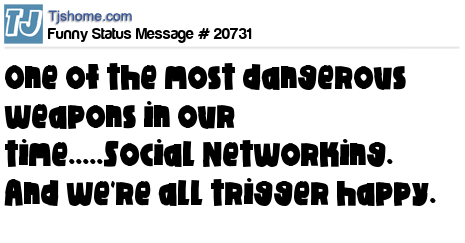 X One of the most dangerous weapons in our time.....Social Networking. And we're all trigger happy.