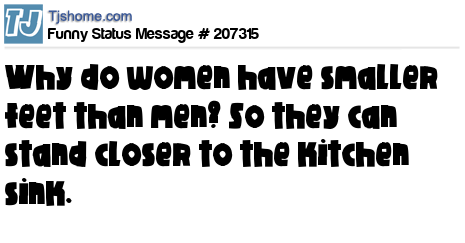 X says Why do women have smaller feet than men? So they can stand closer to the kitchen sink.