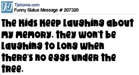X says The kids keep laughing about my memory. they won't be laughing to long when there's no eggs under the tree.