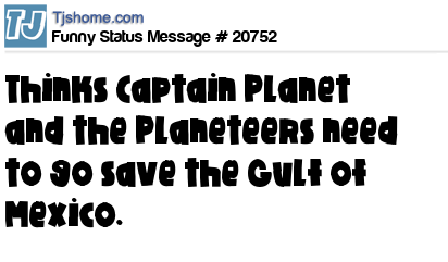 X thinks Captain Planet and the Planeteers need to go save the Gulf of Mexico.