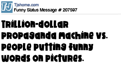 X says Trillion-dollar propaganda machine vs. people putting funny words on pictures.
