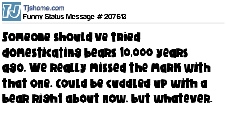 X says Someone should’ve tried domesticating bears 10,000 years ago. We really missed the mark with that one. Could be cuddled up with a bear right about now, but whatever.