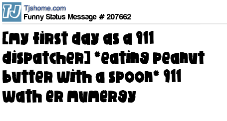 X says [my first day as a 911 dispatcher] *eating peanut butter with a spoon* 911 wath er mumergy