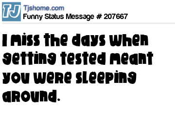- # 204359 I miss the days when getting tested just meant you were sleeping around.