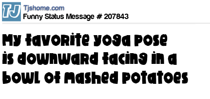 X says My favorite yoga pose is downward facing in a bowl of mashed potatoes