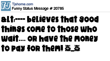 X is <---- believes that good things come to those who wait.... or have the money to pay for them! ^_^